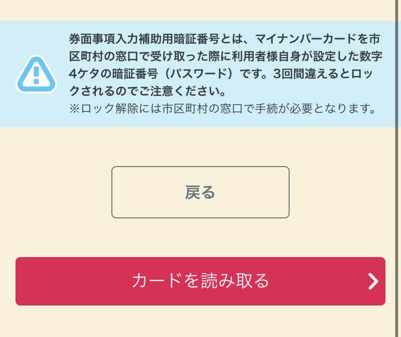 ▲「カードを読み取る」をタップするとマイナポータルAPが開く