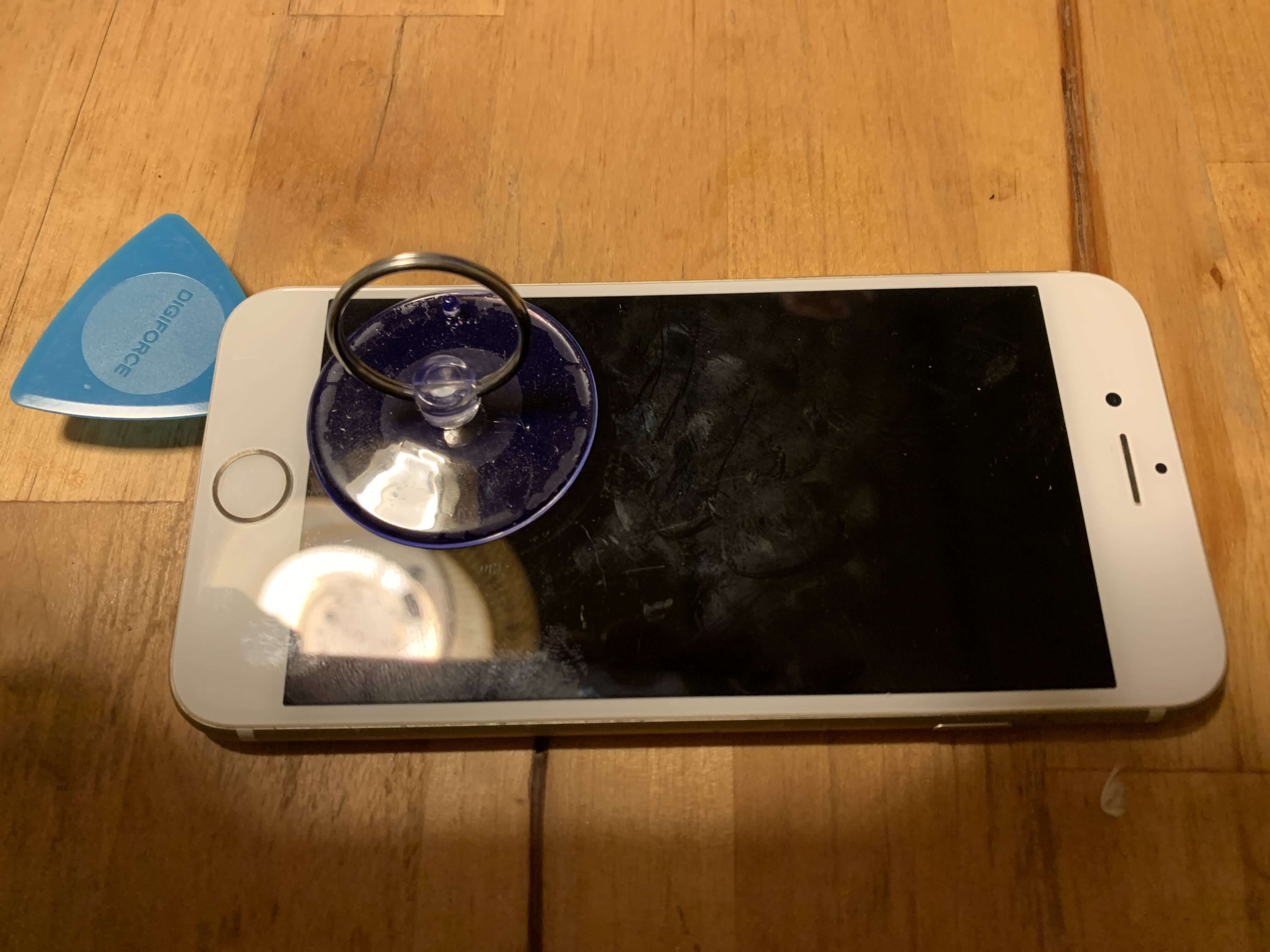 iPhoneを温めたら画面に吸盤を貼り付けて画面を少し浮かす。